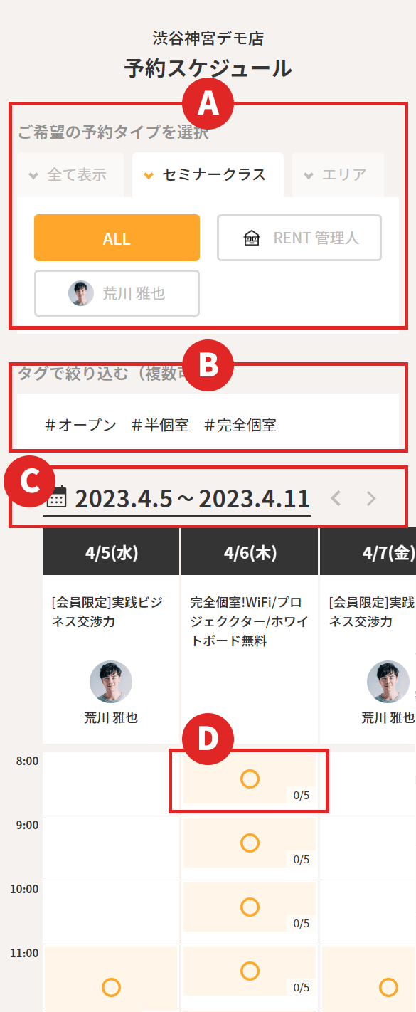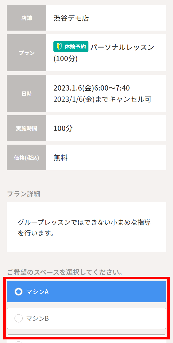 ※予約内容によりブース(場所)の選択が無い場合もあります。